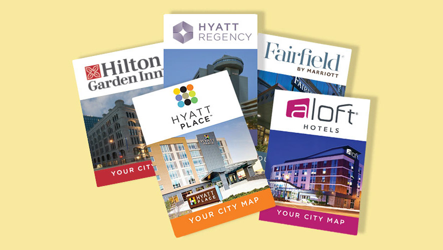 Pocket city maps (overall design and individual local business ads)